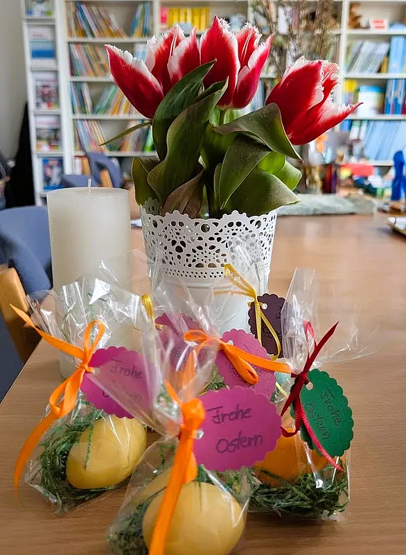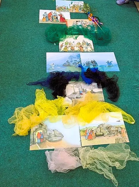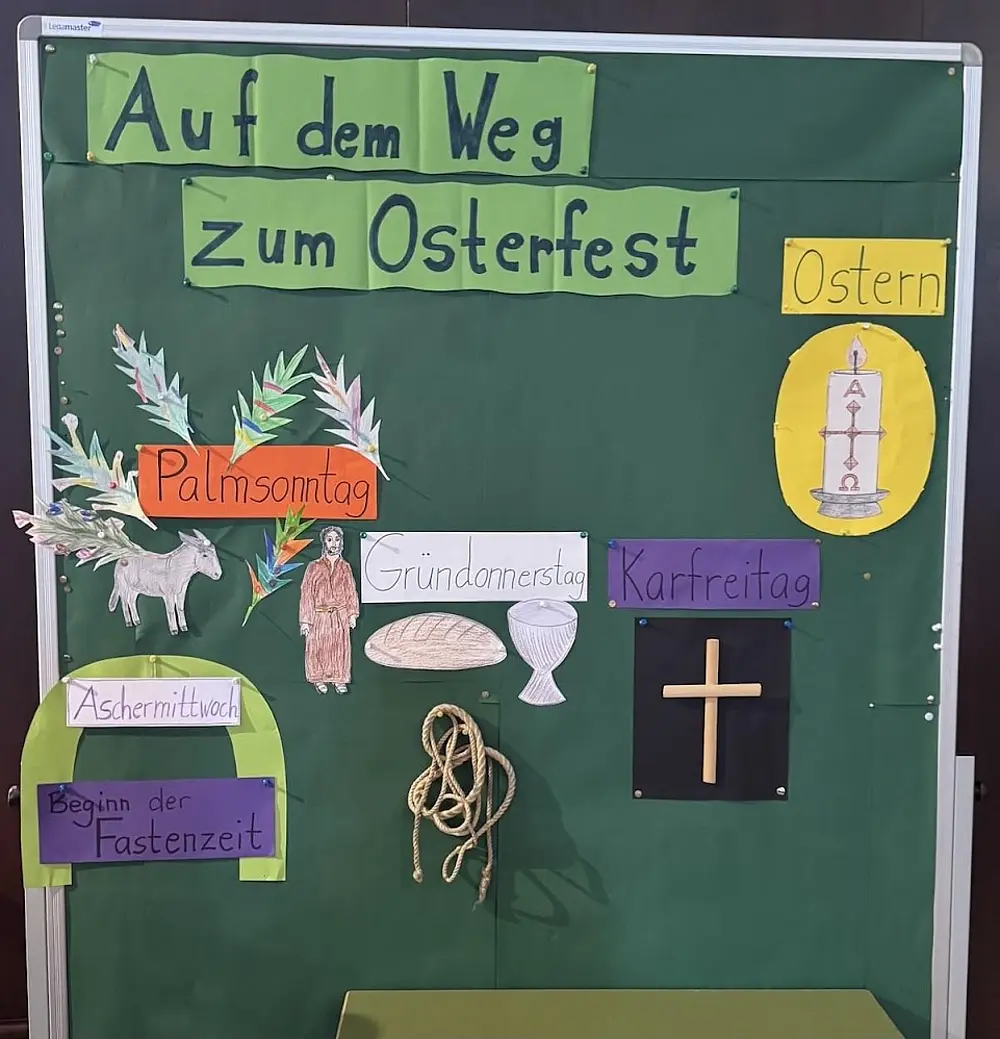 Gemeinsam sind wir den Weg auf Ostern hin gegangen. Vom Aschekreuz auf der Stirn am Aschermittwoch über das Palmstockbasteln für den Palmsonntag bis zum heutigen Gründonnerstags-Schulgottesdienst. Wir haben von Jesus gehört - und seinem schwierigen Weg, an den wir besonders morgen am Karfreitag denken.
